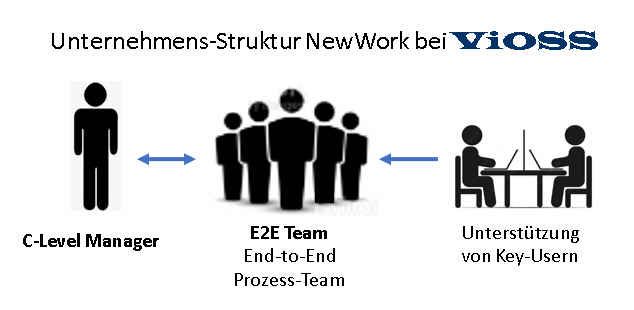 - Die Basis-Organisationsform sind E2E-Prozess-Teams (end-to-end Prozesse bzw. Wertschöpfungsketten)